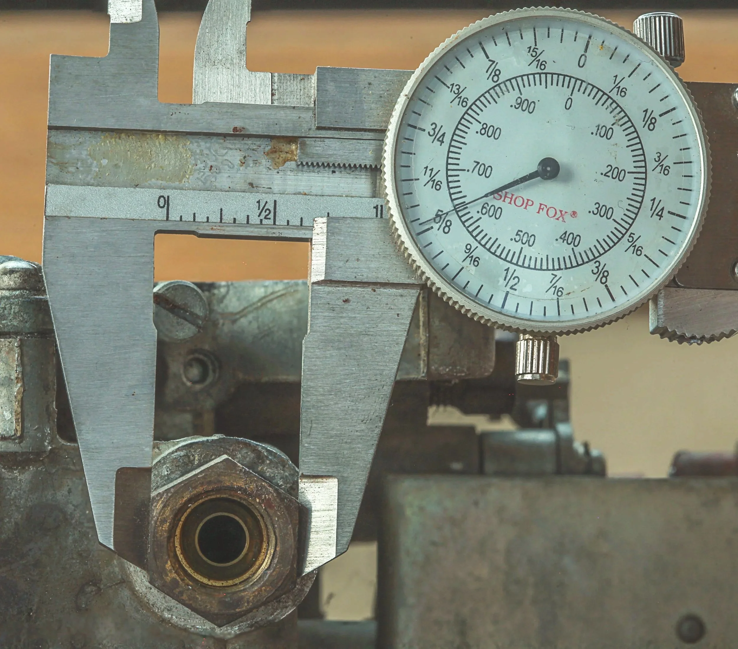 Natural light was used to minimize glare on the caliper dial and metallic surfaces. The camera was stabilized on a tripod with a macro focusing rail, and a three-frame focal bracket was captured to maintain clarity across the fastener geometry and measurement markings. A remote timer was used to eliminate vibration during capture.