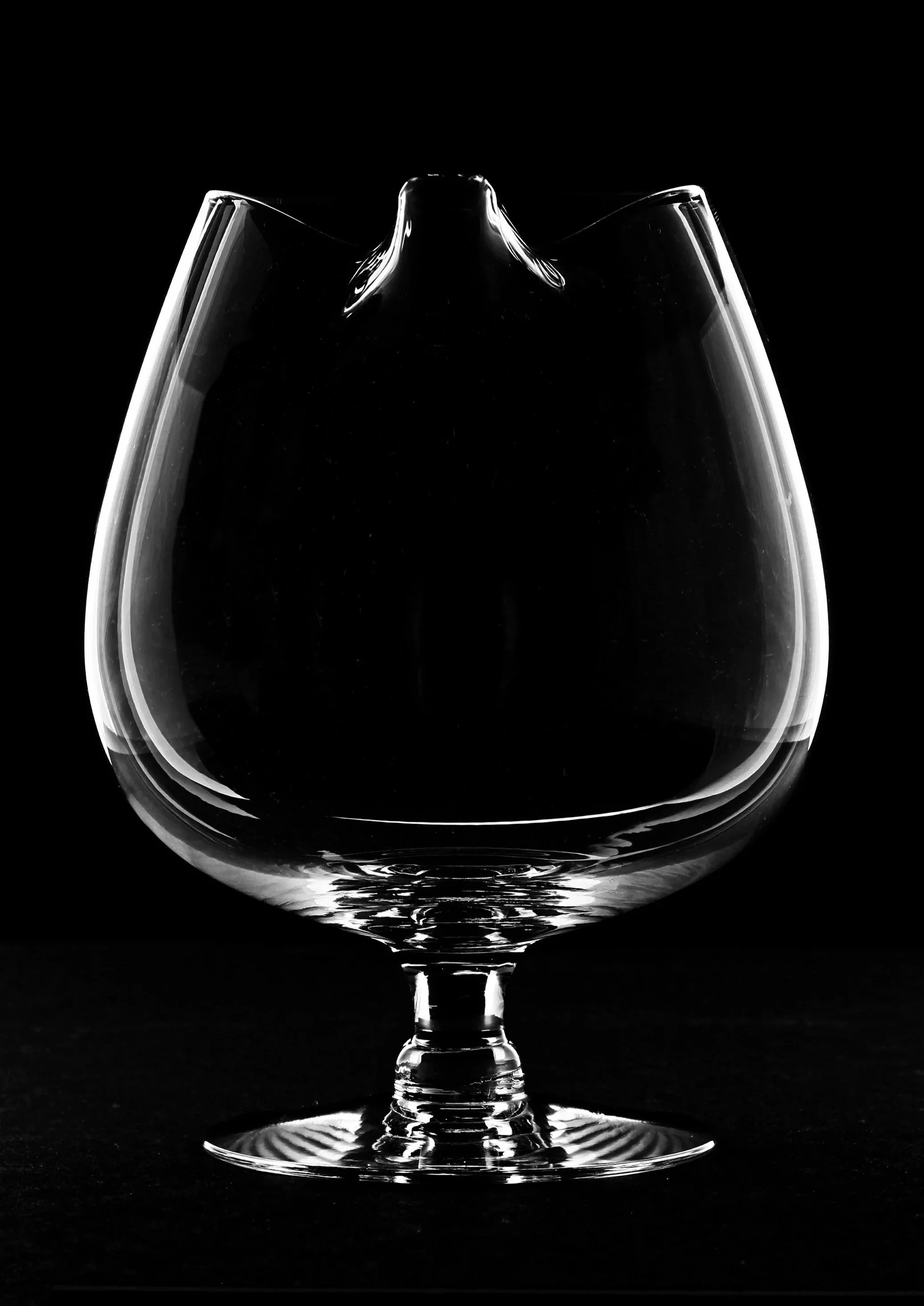 To capture clean edge highlights, crisp rim definition, and uniform transparency while maintaining controlled contrast throughout the bowl and stem. The addition of the top black flag creates intentional rim separation and enhances the dimensional read of the glass form.